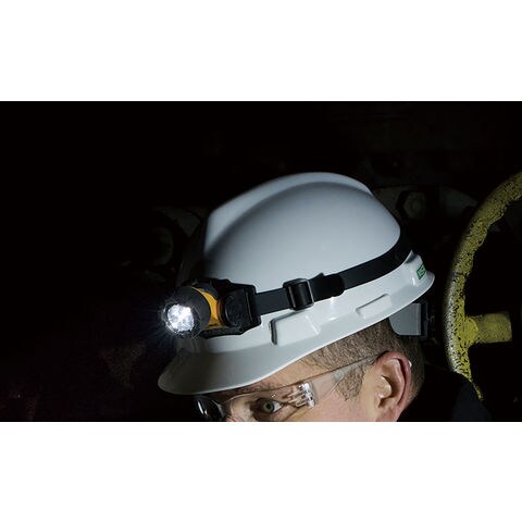 トライデントは1つのリフレクターにC4LEDを1灯と、高輝度LEDを3灯搭載しています.これにより3通りの使い勝手が状況により可能になりました.スポットで強力な明かりが必要なときはC4LEDを使用、長時間の点灯を必要とするときは高輝度LED3灯を使用、またテント内などの常備燈として使う場合には高輝度LEDを1灯使います.これらの切り替えは高品質なロータリー式ノックスイッチで即座に切り替えられます.その他、生活防水や90度可変式のチルティング機能、また標準装備のストラップに加えヘルメット用のラバーストラップも付属しています.