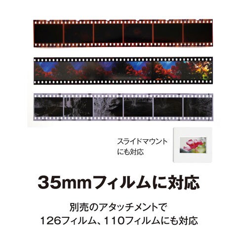 対応フィルム:35mm(カラーネガフィルム・カラーリバーサルフィルム・白黒ネガフィルム)・110*1(カラーネガフィルム・カラーリバーサルフィルム・白黒ネガフィルム)・126*1(カラーネガフィルム・カラーリバーサルフィルム・白黒ネガフィルム)