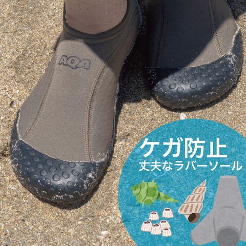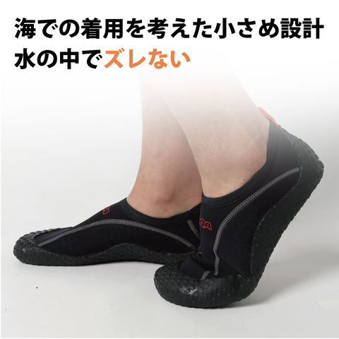 岩場などで足を保護するマリンシューズは、足首までしっかりホールドされているので水中でも脱げにくく、安心・安全にスノーケリングを楽しむための必須アイテムです.