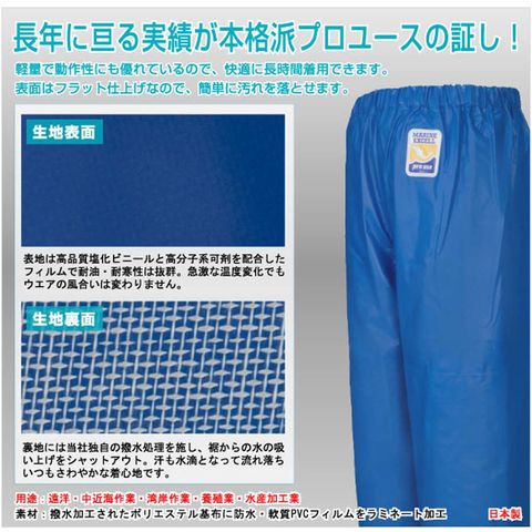 ロゴス LOGOS マリンエクセル 並ズボン グリーン M レインパンツ パンツ ズボン 防水 撥水 水産業 遠洋・中近海作業 湾岸作業 養殖業 水産加工業 12050363