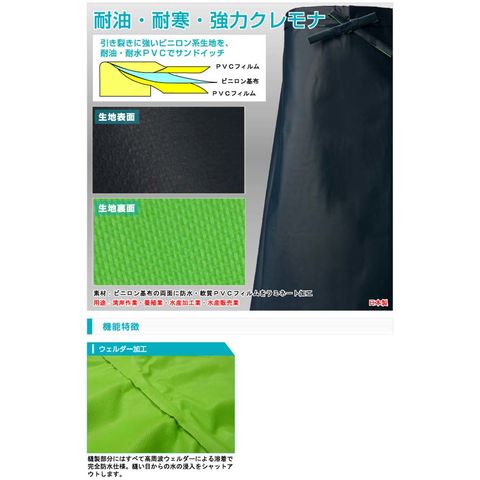ロゴス LOGOS クレモナ陸上 角前掛 鉄紺 1号 防水 耐油 耐寒 湾岸作業 養殖業 水産加工業 水産販売業 15171181