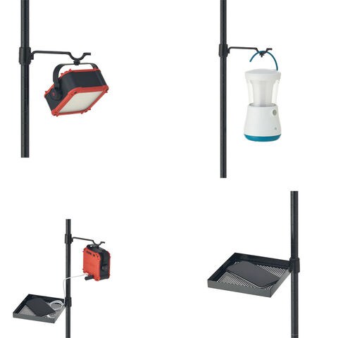 フックやラックの高さは47段階、ポールの高さは3段階、パワーストックランタン取り付けネジ装備、収納バッグ付き