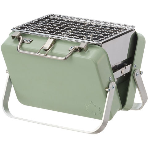 アタッシュケースを開くとグリルになる、スタイリッシュなデザインの卓上ミニグリル.ケースに焼網や火床が収納されているので、開いてセットするだけで簡単にBBQを楽しめる.ケースは持ち手とロックがついているので、電車や徒歩での移動もラクラク.ミニサイズなのでカバンにも入りやすく、バイクや自転車での持ち運びにも.焼網が約16.5×11.4cmのミニサイズ.お一人様BBQはもちろん、ちょこっとお肉を焼いたり、おつまみを炙ったりするのに最適.火床は、別売りの[エコココロゴス・ミニラウンドストーブ]2個がぴったり収まるサイズ.ライターで簡単に着火するので、めんどうな火おこしがなく、すぐにBBQをスタートできます.