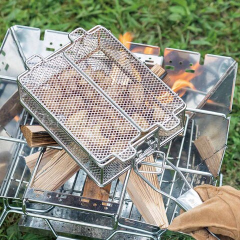 本格的な炭火もも焼きができるユニークな調理アイテム!アウトドアで気軽におつまみを作れて、みんなで楽しむことができます.ポップコーンやコーヒー豆、銀杏を煎るなど、アイデア次第で使い方はさまざま.ハンドルは折りたたみ式なので収納はコンパクトに.