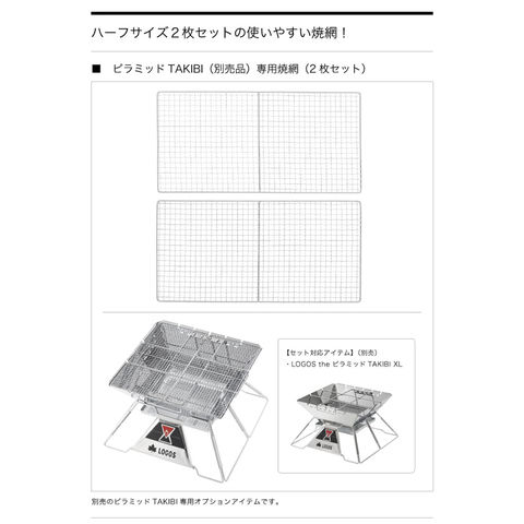 ピラミッドTAKIBI XL専用焼網.半面使用なら、たき火とも同時に楽しめます.1枚で半面、2枚で全面、使い分けできます.