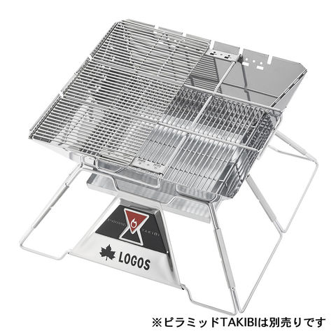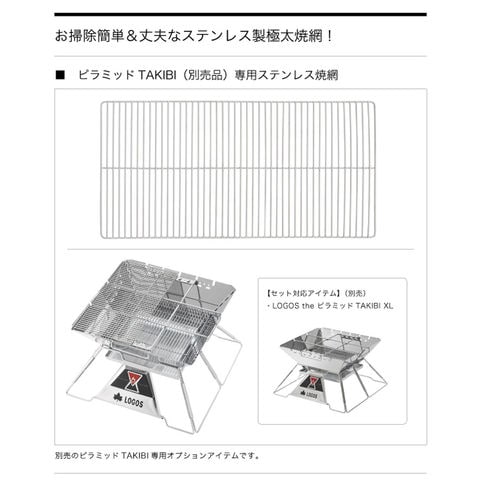 ピラミッドTAKIBI XL専用ステンレス焼網.ハーフサイズなので同時にたき火も楽しめます.2枚使えばフルサイズでBBQができます.