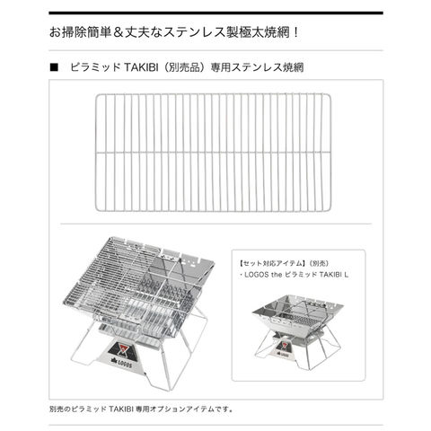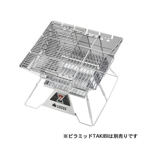 ピラミッドTAKIBI L専用ステンレス焼網.ハーフサイズなので同時にたき火も楽しめます.2枚使えばフルサイズでBBQができます.