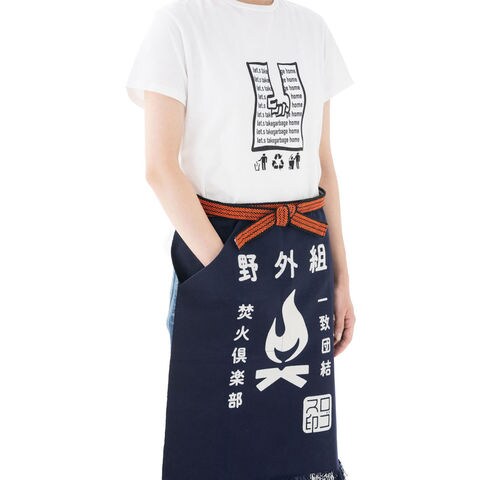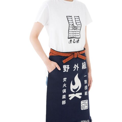 日本の伝統的な仕事着[帆前掛]をアウトドアシーンで着用できるエプロンにアップデート.60年以上もの歴史がある愛知県豊橋市の染物店[鈴木捺染]とコラボレーションし、ひとつひとつ丁寧に染め上げました.使い込むほどに風合いが増す、こだわりの一品です.