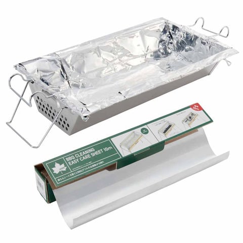 【10mタイプ】楽ちんシートを敷くと、BBQグリルのお掃除が10秒!火床に敷いて調理後にシートを取り除くだけでお掃除完了の便利アイテム.汚れを防ぐことでグリルを長持ちさせるだけでなく、水や洗剤が不要のため環境にもやさしい.一般的なアルミホイルの約3倍の厚みで熱や衝撃でも破れにくいアイテムです.