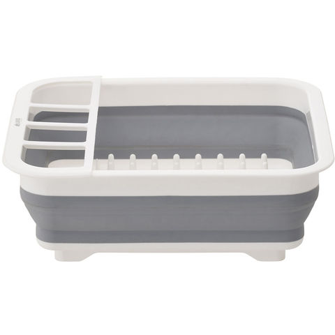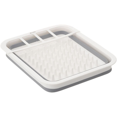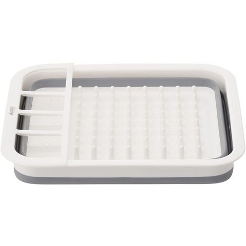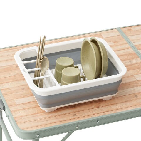 折りたたみ収納可能な水切りラックなので、持ち運びに適しており、アウトドアシーンでも活躍します.場所を選ばず、食器類の水切りが可能です.底には細かな穴が空いており、水が溜まりにくくなっており、また、細かな突起で、食器類の重なりを防ぎます.組み立ては、片手で端をつかみ、もう一方の手で底を押すようにして押し広げるだけ.折りたたみは、両端を持って均等に荷重を掛けながらたたむだけで簡単です.本体のサイドには、箸やスプーンなどを立てるための仕切りがついており、立てかけることができ便利です.