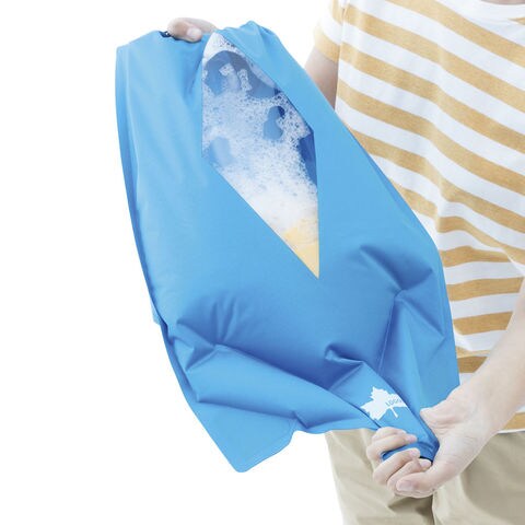 下着やくつ下などを入れてシェイク!鞄に収納できる洗濯機.フィールドでも簡単に下着などを洗濯できます.