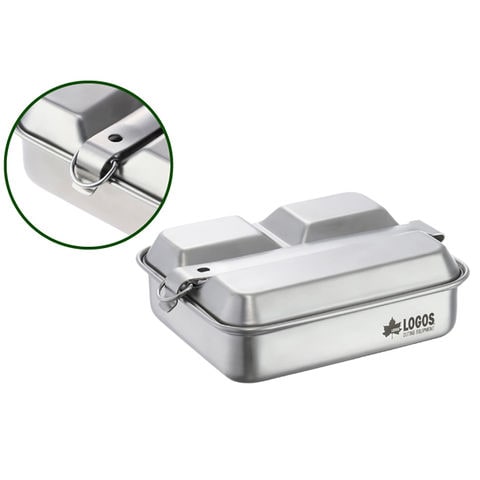 耐久性に優れたステンレス製のメスキットクッカー.蓋は仕切り皿になっており、様々な料理の盛り付けやソース皿等、幅広い使い方ができる.