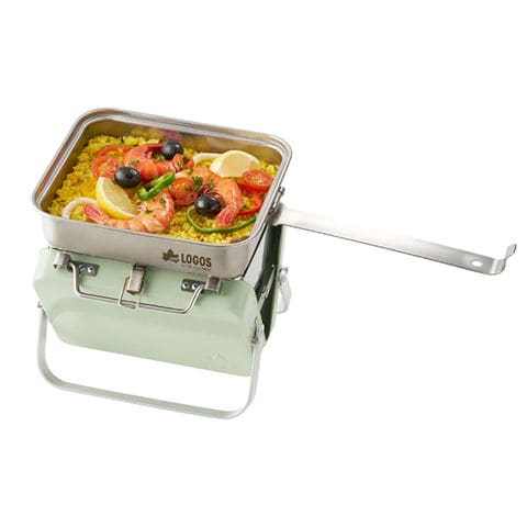 仕様:直火調理可能でフライパンや鍋としても使え、様々な調理が可能.また、フタは仕切り付きのお皿としても使える.使わない時は、食材や小物やカトラリーを入れたりと、用途いろいろ.コンパクトかつ移動中にフタが外れず、持ち運びに便利.フタを押さえながら持ち手を折りたたむとスムーズにロックができます.