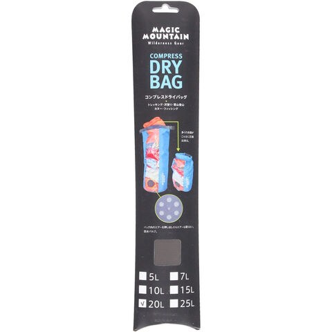 マジックマウンテン MAGIC MOUNTAIN コンプレスドライバッグ20L 丸底型 防水バッグ 防水ケース 圧縮袋 圧縮バッグ コンプレッション 水遊び 海 川 ビーチ プール キャンプ フィッシング 登山 MMCPDB20L グレー