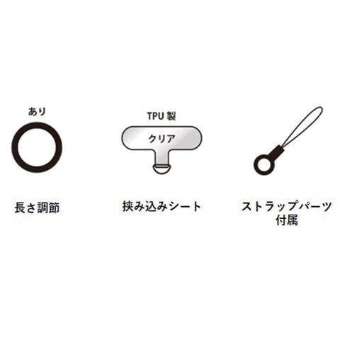 端末やケースを選ばず装着できる多機能ネックストラップ.付属の挟み込みシートで、ケースにストラップホールが無くても装着可能.首に負担をかけにくい直径5mmの丸紐を採用.ViAMO freelyとお揃いカラー.長さ調整で首掛けor肩掛けが可能な2WAY仕様.スマホ以外にも使えるストラップパーツ付属.