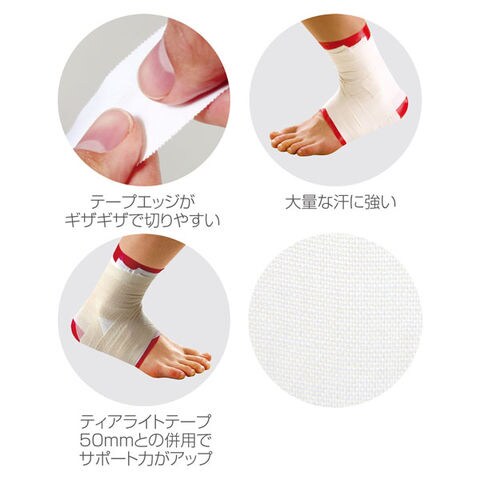 固定力のある足首用の非伸縮のホワイトテープ.両サイドのギザギザカットは、切りやすく、スピーディーにテープを巻くことができます.
