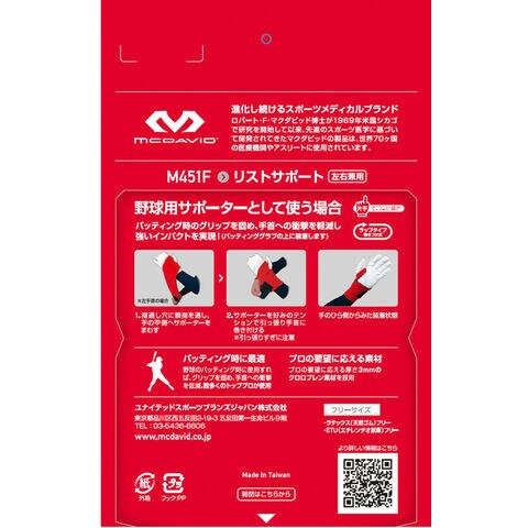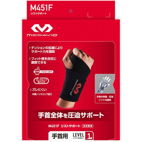 マクダビッド McDavid リストサポート ロゴあり 左右兼用 サポーター ガード 手首 ラップタイプ 圧迫 固定 ホールド 安定 フィット ズレにくい 部活 クラブ スクール 練習 試合 M451F ブラック