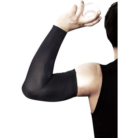 マジコスポルト・ラジアルパワースリーブは抜群の軽さとストレッチ性、フィット性を備え、腕全体の適圧サポート.投球時の捻転によるブレを制御し動きを安定化.内側側副靱帯を守るテーピング構造で腕・ひじにかかる負担の軽減・保護から、パフォーマンスアップまでをサポートします.