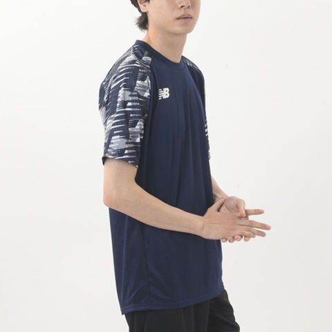ニューバランス New Balance ゲームシャツ メンズ トップス 半袖 フットボール ユニフォーム 袖切り替えデザイン シンプル 試合 練習 トレーニング フィットネス 部活 クラブ チーム JMTF1417 ネイビー
