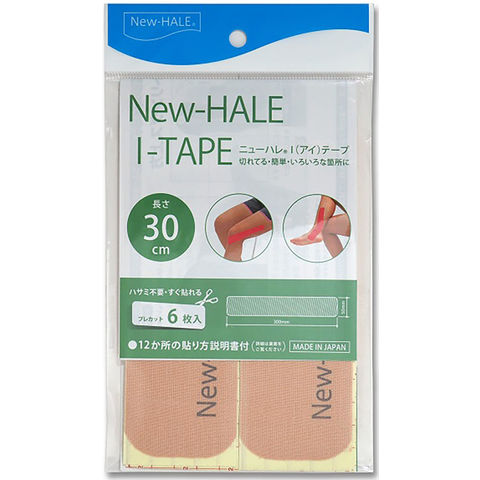 I型状のプレカットでイロイロな箇所に従来のNew-HALE V-TAPEに加えて、全身のさまなざまな筋肉や関節に細かくアプローチできるロールテープを使用したテーピングメソッドをより簡単に、便利に活用いただけます.肩や手首の他、外反母趾や足裏アーチのサポートなど12箇所の貼り方解説書付き.