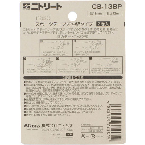 ニトリート NITREAT CBテープ 13mm×12m 2巻入 テーピング 非伸縮 スポーツ 関節安定 固定 てーぴんぐ すぽーつ テープ CB-13BP CB13BP