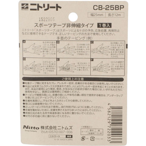 ニトリート NITREAT CBテープ 25mm×12m テーピング 非伸縮タイプ スポーツ 関節 固定 低皮膚刺激性 けが 怪我 予防 応急処置 てーぴんぐ スポーツテープ CB25BP