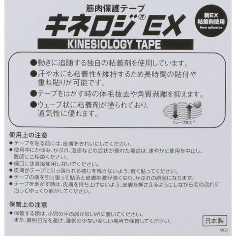 長く密着、楽に剥がせる進化したキネシオロジーテープです.動きに追随する独自の粘着剤を使用していて、汗や水にも粘着性を維持するため長時間の重ね貼りが可能です.テープを剥がす時の体毛抜去や角質剥離を抑え、ウェーブ状に粘着剤が塗られているので、通気性にも優れています.