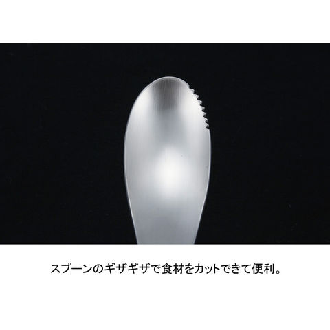 金物の町、燕三条で生産しています.スプーンのギザギザで食材をカットできて便利.