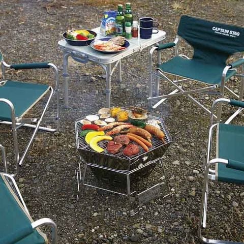 キャプテンスタッグ CAPTAIN STAG ヘキサ ステンレスファイアグリル M-6500 焚火 網焼き キャンプ キャンプファイヤー 組み立て簡単 薄型 収納 持ち運び便利 M6500