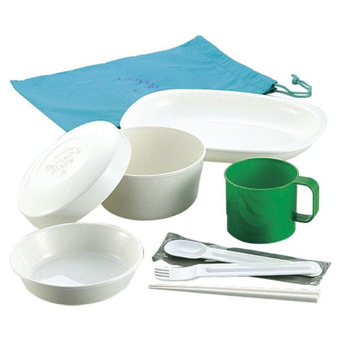 ●ボール(1)、プレート(1)、フタ(プレート兼用)(1)、マグカップ260ml(1)、スプーン・フォーク・ハシ各(1)(ケース入)、バッグ(1)