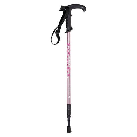 キャプテンスタッグ CAPTAIN STAG トレッキングステッキ Tグリップ(3段スライド式)〈ピンク〉フラワー M9858