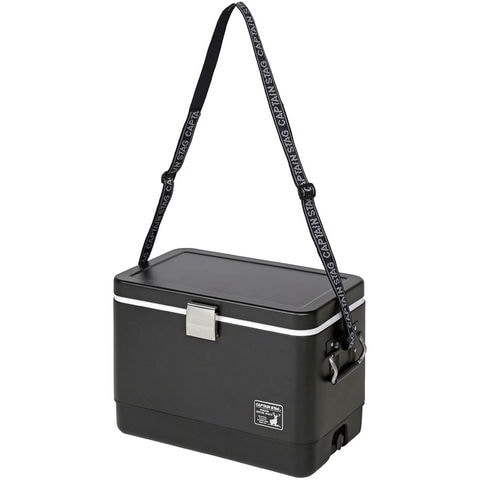 ウレタンフォーム注入式で保冷力抜群のクーラーボックス.水抜き栓付属で排水がスムーズ.肩掛けベルト付属で持ち運びが便利.