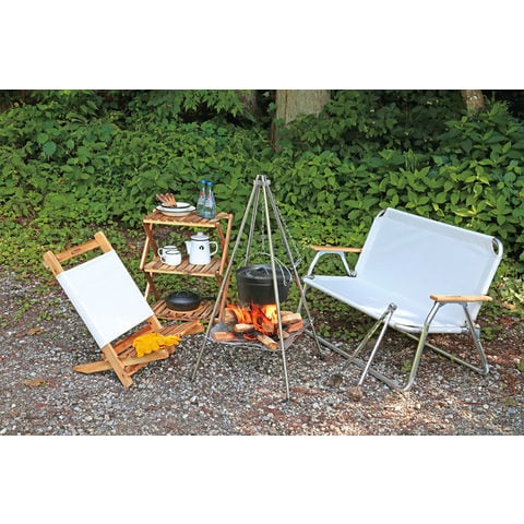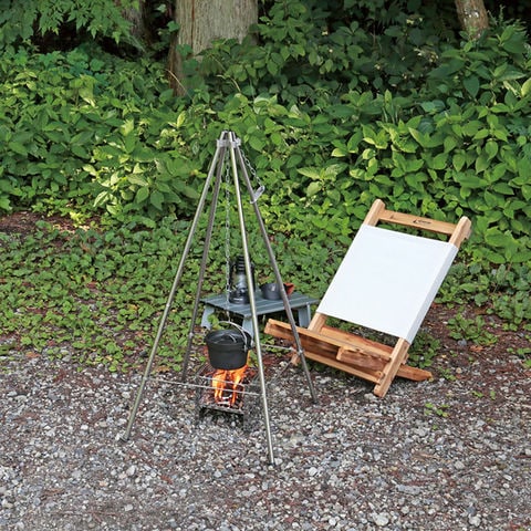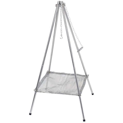 燃焼効率が良いメッシュタイプの焚き火台です.ダッチオーブン25cmや鍋が吊るせるチェーン付き.吊り下げ位置が自由に変えられる自在チェーン.一台二役.メッシュベースを外せば、小型グリル用の四脚スタンドとしても使えます.丸めてコンパクト収納.収納バッグ付き.