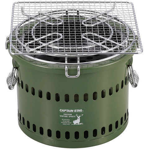 キャプテンスタッグ CAPTAIN STAG ポータブル 水冷七輪 オリーブ キャンプ キャンプ用品 ストーブ 炭火焼 炭火焼き バーベキュー BBQ 屋外専用 ゴトク アミ 網 セット 煮炊き 焼き物 UG0090