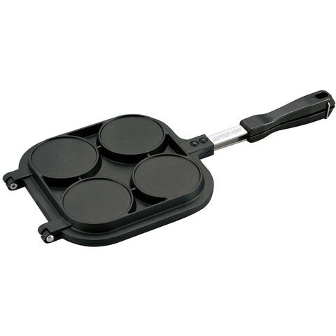 アウトドアでも楽しくスイーツ作り.ご家庭でも使えます.パンケーキが4個焼け、大判焼きも作れます.