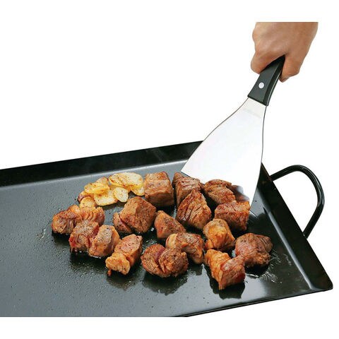 鉄板焼き料理に最適.鉄板のコゲ落としに.食材の切り分けなどに便利.握りやすく熱を伝えにくいウッドグリップ.