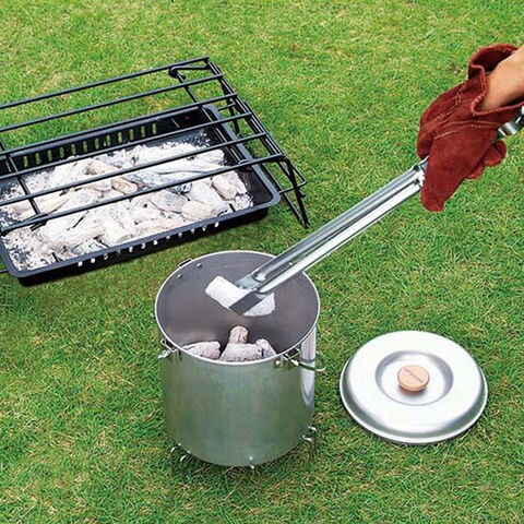 バーベキューなどで使用した木炭や備長炭の消火に便利な火消しつぼです.使用して残った炭をつぼの中に入れてふたをすると自然に消火します.自然消火した炭は再利用が可能です.底面の熱が伝わりにくいスタンド付き.収納の際、スタンドはふたを押さえるストッパーになります.(※完全密閉ではありません.車などで運搬する際は、消火を確認後に袋などに入れてください.) 『M-6625 大型火消しつぼ火起こし器セット』の交換用火消しつぼとして使えます.