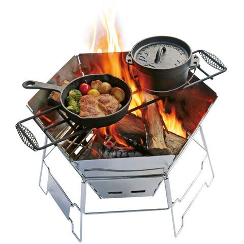 スキレットやダッチオーブン、クッカーやフライパン、ケットルなどの調理に使えるゴトクです.奥行き435mm以内のバーベキューコンロや焚火台に取り付けて使えます.(※バーベキューコンロや焚火台の形状・サイズなどにより、取り付けできない場合があります.)サイズが25cmまでのダッチオーブンに使用できます.