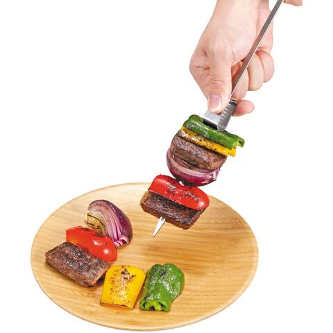 食材が回りにくい平串タイプです.便利な串抜き金具付き.