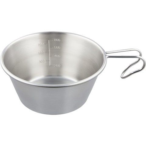 金物の町、燕三条で生産しています.フィールドでのアクティブシーンに応える、シンプル、ベーシック機能をコンセプトにしたシェラカップ.優れた耐久性のある 18-8 ステンレスを採用.小さな鍋としても使用できるビッグサイズ.計量に便利な目盛付.積み重ねができて、すっきり収納できます.