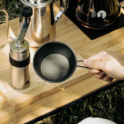 オキツモ社の耐熱塗料を使用したシェラカップ.フィールドでのアクティブシーンに応える、シンプル、ベーシック機能をコンセプトにしたシェラカップです.優れた耐久性のある18-8ステンレスを採用.広口で食器として使えます.計量に便利な目盛付.積み重ねができて、すっきり収納できます.金物の町、燕三条で生産しています.