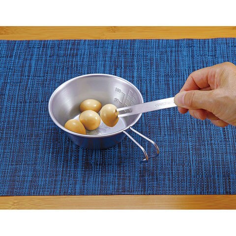 シェラカップにちょうどいいミニフォーク.おつまみやフルーツが食べやすいスリム形状.焼き鳥の串抜きにも.缶詰のタブを起こしやすいよう、持ち手側の先端を薄くしています.