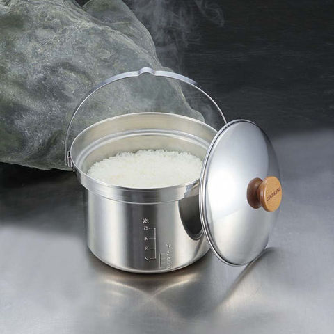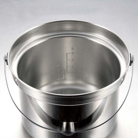 熱伝導のよい軟鉄を使用、耐食性に優れたステンレス鋼でサンドした3層鋼(5層構造)です.お米を水の分量を量るのに便利な目盛付.