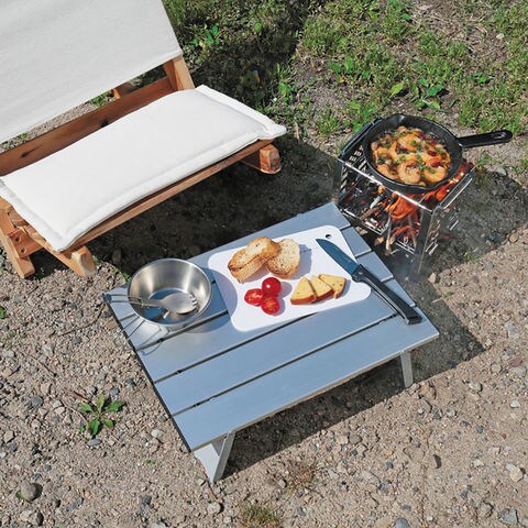 ソロキャンプに最適なコンパクトサイズのカッティングボード.便利な目盛り付き.カマドスマートグリルB6型(別売)にぴったりな収納サイズで、収納バッグにグリルと一緒に収納可能.