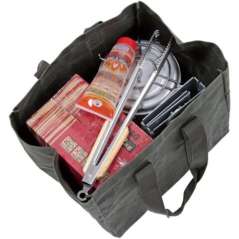 マチが広く深めなコットンバッグ.バーベキューグッズもまとめて運べます.