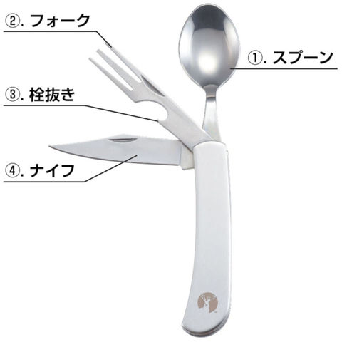 機能:1.スプーン、2.フォーク、3.栓抜き、4.ナイフ