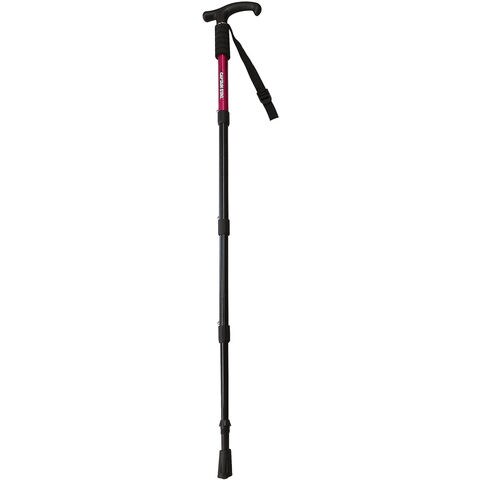 トレッキング時のバランス取りや下降時の膝への負担を軽減します.超コンパクト.収納サイズ45cm以下.驚きの軽量タイプ.220g.85~95cm(3段階調整)ロックピンが飛び出す穴のセンターに収まるようにシャフトのラインを合わせて伸縮すると簡単に合わせることが可能です.付属のバスケットを取り付けると砂地・軟弱な地面・ぬかるみ等で安全を確保.