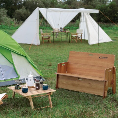 板を組み合わせるだけで簡単に組み立てができる、アウトドアでも家でも映えるウッドパネルのラグジュアリーなベンチです.キャプテンスタッグ『アルミ背付きベンチ用リラックスクッションカバー』(別売/UC-1667・UC-1685)を取り付けできます.