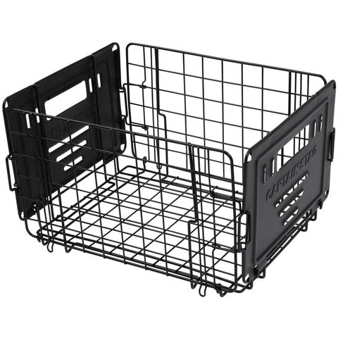 丈夫なスチール製バスケット.組立簡単で畳んで収納可能.アウトドアだけでなくお家でも使える.ワイヤーメッシュと鋼板を組合せたオシャレなデザイン.沢山の道具を綺麗に収納・整理・運搬ができる.積重ねも可能.