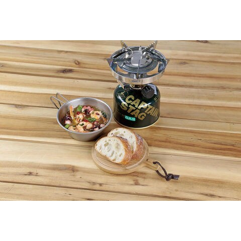 キャプテンスタッグ ステンレスシェラカップ用のフタです.シェラカップ炊飯用としてや、鍋料理のフタとして使用できます.単体ではカッティングボードとしても使用できます.ソロキャンプ料理にお勧めです.